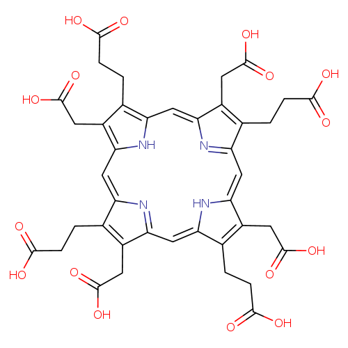 | InChI Identifier | InChI=1S/C40H38N4O16/c45-33(46)5-1-17-21(9-37(53)54)29-14-26-19(3-7-35(49)50)23(11-39(57)58)31(43-26)16-28-20(4-8-36(51)52)24(12-40(59)60)32(44-28)15-27-18(2-6-34(47)48)22(10-38(55)56)30(42-27)13-25(17)41-29/h13-16,41,44H,1-12H2,(H,45,46)(H,47,48)(H,49,50)(H,51,52)(H,53,54)(H,55,56)(H,57,58)(H,59,60)/b25-13-,26-14-,27-15-,28-16-,29-14-,30-13-,31-16-,32-15- |