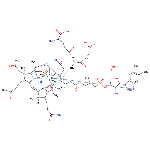 | Traditional Name | 1-{[2-(4-amino-4-carboxybutanamido)-2-(carboxymethylcarbamoyl)ethyl]sulfanyl}-30,35,40-tris(2-carbamoylethyl)-24,36,41-tris(carbamoylmethyl)-15,46-dihydroxy-12-(hydroxymethyl)-5,6,17,23,28,31,31,36,38,41,42-undecamethyl-15,20-dioxo-11,14,16-trioxa-2lambda5,9,19,26,43lambda5,44lambda5,45lambda5-heptaaza-15lambda5-phospha-1-cobaltadodecacyclo[27.14.1.1^{1,34}.1^{2,9}.1^{10,13}.0^{1,26}.0^{3,8}.0^{23,27}.0^{25,42}.0^{32,44}.0^{39,43}.0^{37,45}]heptatetraconta-2(47),3,5,7,27,29(44),32,34(45),37,39(43)-decaene-2,43,44,45-tetrakis(ylium)-1,1,1-triuide |