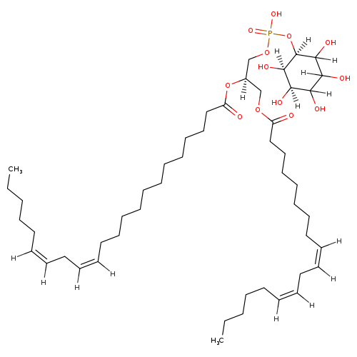 | SMILES | [H]\C(CCCCC)=C(/[H])C\C([H])=C(\[H])CCCCCCCCCCCC(=O)O[C@]([H])(COC(=O)CCCCCCC\C([H])=C(\[H])C\C([H])=C(\[H])CCCCC)COP(O)(=O)O[C@@]1([H])C([H])(O)C([H])(O)C([H])(O)[C@@]([H])(O)[C@@]1([H])O |