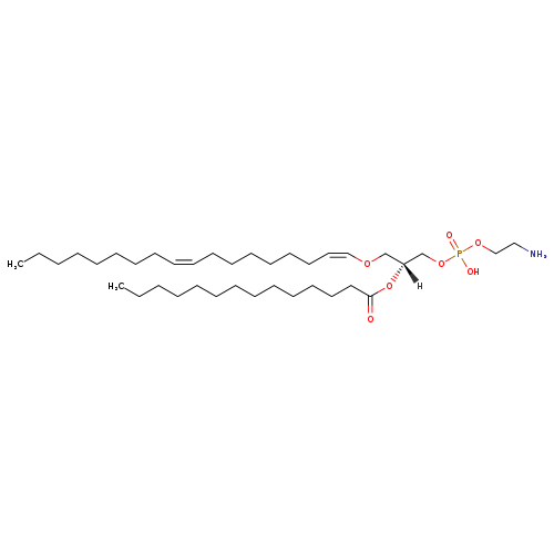 | Traditional Name | 2-aminoethoxy(2R)-3-[(1Z,9Z)-octadeca-1,9-dien-1-yloxy]-2-(tetradecanoyloxy)propoxyphosphinic acid |