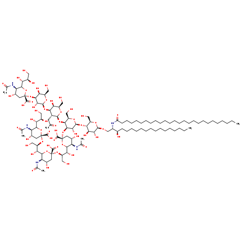 | SMILES | CCCCCCCCCCCCCCCCCCCCCCCCCC(=O)N[C@@H](CO[C@@H]1O[C@H](CO)[C@@H](O[C@@H]2O[C@H](CO)[C@H](O[C@@H]3O[C@H](CO)[C@H](O)[C@H](O[C@@H]4O[C@H](CO)[C@H](O)[C@H](O[C@@]5(C[C@H](O)[C@@H](NC(C)=O)C(O5)[C@H](O)[C@H](O)CO)C(O)=O)[C@H]4O)[C@H]3CC(C)=O)[C@H](O[C@@]3(C[C@H](O)[C@@H](NC(C)=O)C(O3)[C@H](O)[C@@H](CO)O[C@@]3(C[C@H](O)[C@@H](NC(C)=O)C(O3)[C@H](O)[C@@H](CO)O[C@@]3(C[C@H](O)[C@@H](NC(C)=O)C(O3)[C@H](O)[C@H](O)CO)C(O)=O)C(O)=O)C(O)=O)[C@H]2O)[C@H](O)[C@H]1O)[C@H](O)CCCCCCCCCCCCCCC |
