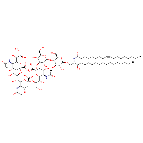 | SMILES | CCCCCCCCCCCCCCC[C@@H](O)[C@H](CO[C@@H]1O[C@H](CO)[C@@H](O[C@@H]2O[C@H](CO)[C@H](O)[C@H](O[C@@]3(C[C@H](O)[C@@H](NC(C)=O)C(O3)[C@H](O)[C@@H](CO)O[C@@]3(C[C@H](O)[C@@H](NC(C)=O)C(O3)[C@H](O)[C@@H](CO)O[C@@]3(C[C@H](O)[C@@H](NC(C)=O)C(O3)[C@H](O)[C@H](O)CO)C(O)=O)C(O)=O)C(O)=O)[C@H]2O)[C@H](O)[C@H]1O)NC(=O)CCCCCCC\C=C/CCCCCCCC |