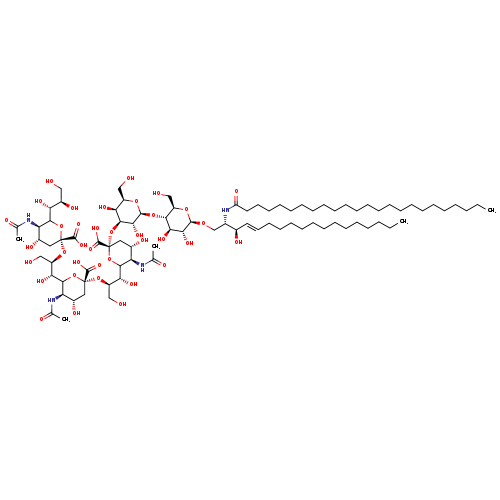 | SMILES | CCCCCCCCCCCCCCCCCCCCCCCC(=O)N[C@@H](CO[C@@H]1O[C@H](CO)[C@@H](O[C@@H]2O[C@H](CO)[C@H](O)[C@H](O[C@@]3(C[C@H](O)[C@@H](NC(C)=O)C(O3)[C@H](O)[C@@H](CO)O[C@@]3(C[C@H](O)[C@@H](NC(C)=O)C(O3)[C@H](O)[C@@H](CO)O[C@@]3(C[C@H](O)[C@@H](NC(C)=O)C(O3)[C@H](O)[C@H](O)CO)C(O)=O)C(O)=O)C(O)=O)[C@H]2O)[C@H](O)[C@H]1O)[C@H](O)\C=C\CCCCCCCCCCCCC |