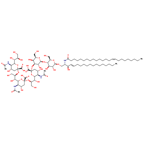 | SMILES | CCCCCCCCCCCCC\C=C\[C@@H](O)[C@H](CO[C@@H]1O[C@H](CO)[C@@H](O[C@@H]2O[C@H](CO)[C@H](O)[C@H](O[C@@]3(C[C@H](O)[C@@H](NC(C)=O)C(O3)[C@H](O)[C@@H](CO)O[C@@]3(C[C@H](O)[C@@H](NC(C)=O)C(O3)[C@H](O)[C@@H](CO)O[C@@]3(C[C@H](O)[C@@H](NC(C)=O)C(O3)[C@H](O)[C@H](O)CO)C(O)=O)C(O)=O)C(O)=O)[C@H]2O)[C@H](O)[C@H]1O)NC(=O)CCCCCCCCCCCCC\C=C/CCCCCCCC |