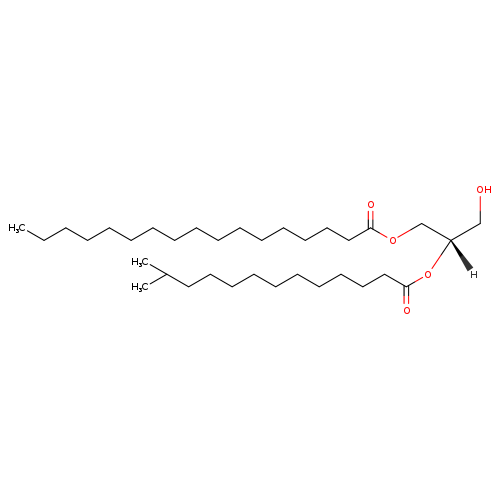 | InChI Identifier | InChI=1S/C34H66O5/c1-4-5-6-7-8-9-10-11-12-13-14-18-21-24-27-33(36)38-30-32(29-35)39-34(37)28-25-22-19-16-15-17-20-23-26-31(2)3/h31-32,35H,4-30H2,1-3H3/t32-/m0/s1 | ||||||||||||||||||||||||||||||||||||||||||||||||||||||||||||||||||||||||||||