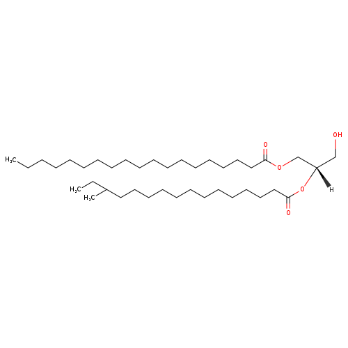| InChI Identifier | InChI=1S/C39H76O5/c1-4-6-7-8-9-10-11-12-13-14-15-16-20-23-26-29-32-38(41)43-35-37(34-40)44-39(42)33-30-27-24-21-18-17-19-22-25-28-31-36(3)5-2/h36-37,40H,4-35H2,1-3H3/t36?,37-/m0/s1 | ||||||||||||||||||||||||||||||||||||||||||||||||||||||||||||||||||||||||||||