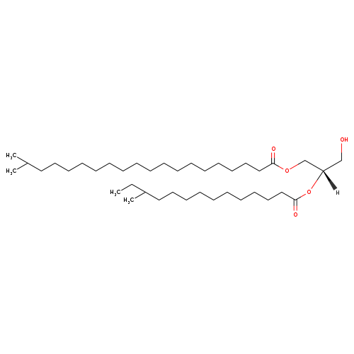 | InChI Identifier | InChI=1S/C39H76O5/c1-5-36(4)30-26-22-18-15-16-20-24-28-32-39(42)44-37(33-40)34-43-38(41)31-27-23-19-14-12-10-8-6-7-9-11-13-17-21-25-29-35(2)3/h35-37,40H,5-34H2,1-4H3/t36?,37-/m0/s1 | ||||||||||||||||||||||||||||||||||||||||||||||||||||||||||||||||||||||||||||