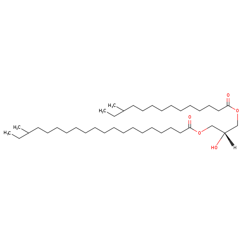 | InChI Identifier | InChI=1S/C39H76O5/c1-5-35(3)29-25-21-17-13-11-9-7-8-10-12-14-19-23-27-31-38(41)43-33-37(40)34-44-39(42)32-28-24-20-16-15-18-22-26-30-36(4)6-2/h35-37,40H,5-34H2,1-4H3/t35?,36?,37-/m1/s1 | |||||||||||||||||||||||||||||||||||||||||||||||||||||||||