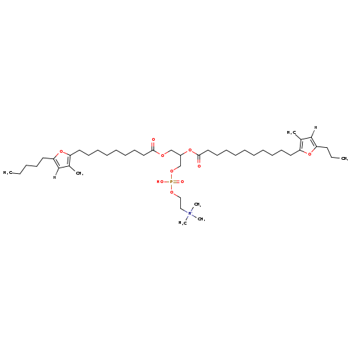 | Traditional Name | 3-{[9-(3-methyl-5-pentylfuran-2-yl)nonanoyl]oxy}-2-{[11-(3-methyl-5-propylfuran-2-yl)undecanoyl]oxy}propoxy(2-(trimethylammonio)ethoxy)phosphinic acid | ||||||||||||||||||||||||||||||||||||||||||||||||||||||||||||||||