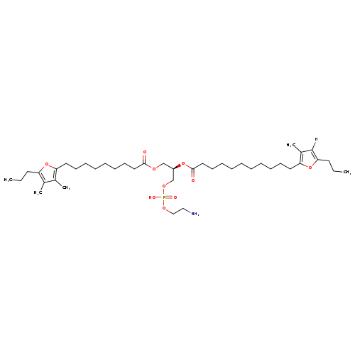 | Traditional Name | 2-aminoethoxy((2R)-3-{[9-(3,4-dimethyl-5-propylfuran-2-yl)nonanoyl]oxy}-2-{[11-(3-methyl-5-propylfuran-2-yl)undecanoyl]oxy}propoxy)phosphinic acid |