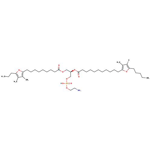 | Traditional Name | 2-aminoethoxy((2R)-3-{[9-(3,4-dimethyl-5-propylfuran-2-yl)nonanoyl]oxy}-2-{[11-(3-methyl-5-pentylfuran-2-yl)undecanoyl]oxy}propoxy)phosphinic acid |