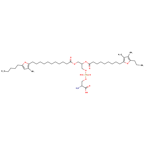 | Traditional Name | 2-amino-3-[(2-{[9-(3,4-dimethyl-5-propylfuran-2-yl)nonanoyl]oxy}-3-{[11-(3-methyl-5-pentylfuran-2-yl)undecanoyl]oxy}propoxy(hydroxy)phosphoryl)oxy]propanoic acid |