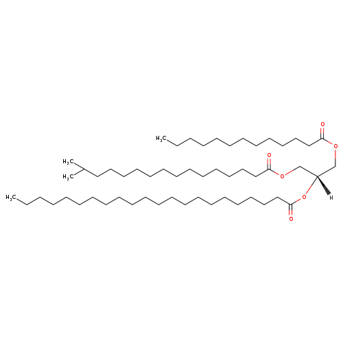 | InChI Identifier | InChI=1S/C55H106O6/c1-5-7-9-11-13-15-17-18-19-20-21-22-23-24-27-32-36-40-44-48-55(58)61-52(49-59-53(56)46-42-38-34-30-16-14-12-10-8-6-2)50-60-54(57)47-43-39-35-31-28-25-26-29-33-37-41-45-51(3)4/h51-52H,5-50H2,1-4H3/t52-/m0/s1 | ||||||||||||||||||||||||||||||||||||||||||||||||||||||||||||||||||||||||||||