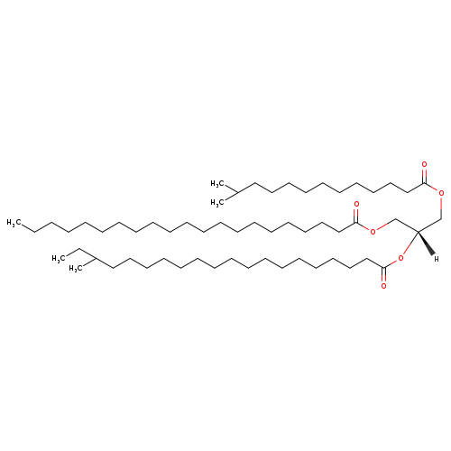 | InChI Identifier | InChI=1S/C59H114O6/c1-6-8-9-10-11-12-13-14-15-16-17-18-22-25-28-34-39-44-49-57(60)63-52-56(53-64-58(61)50-45-40-35-31-30-32-37-42-47-54(3)4)65-59(62)51-46-41-36-29-26-23-20-19-21-24-27-33-38-43-48-55(5)7-2/h54-56H,6-53H2,1-5H3/t55?,56-/m1/s1 |