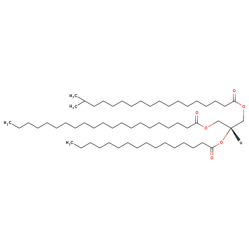 | InChI Identifier | InChI=1S/C59H114O6/c1-5-7-9-11-13-15-17-19-20-21-22-23-27-30-34-38-42-46-50-57(60)63-53-56(65-59(62)52-48-44-40-36-32-25-18-16-14-12-10-8-6-2)54-64-58(61)51-47-43-39-35-31-28-24-26-29-33-37-41-45-49-55(3)4/h55-56H,5-54H2,1-4H3/t56-/m1/s1 | ||||||||||||||||||||||||||||||||||||||||||||||||||||||||||||||||||||||||||||||||