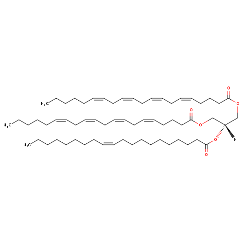 | SMILES | [H]C(COC(=O)CCC\C=C/C\C=C/C\C=C/C\C=C/CCCCC)(COC(=O)CCC\C=C/C\C=C/C\C=C/C\C=C/CCCCC)OC(=O)CCCCCCCCC\C=C/CCCCCCCC |