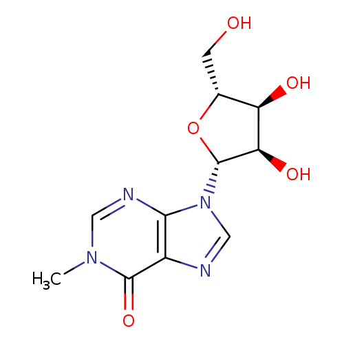 | SMILES | CN1C=NC2=C(N=CN2[C@@H]2O[C@H](CO)[C@@H](O)[C@H]2O)C1=O |