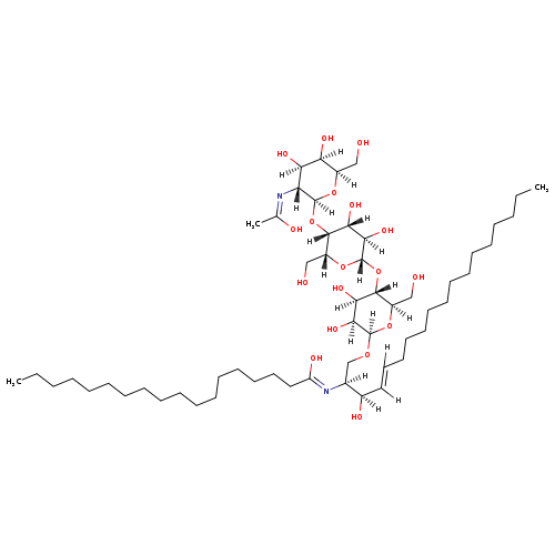 | SMILES | [H]\C(CCCCCCCCCCCCC)=C(\[H])[C@@]([H])(O)[C@]([H])(CO[C@]1([H])O[C@]([H])(CO)[C@@]([H])(O[C@]2([H])O[C@]([H])(CO)[C@]([H])(O[C@]3([H])O[C@]([H])(CO)[C@]([H])(O)[C@]([H])(O)[C@@]3([H])N=C(C)O)[C@]([H])(O)[C@@]2([H])O)[C@]([H])(O)[C@]1([H])O)N=C(O)CCCCCCCCCCCCCCCCC | |||||||||||||||||||||||||||||||||||||||||||||||||||||||||