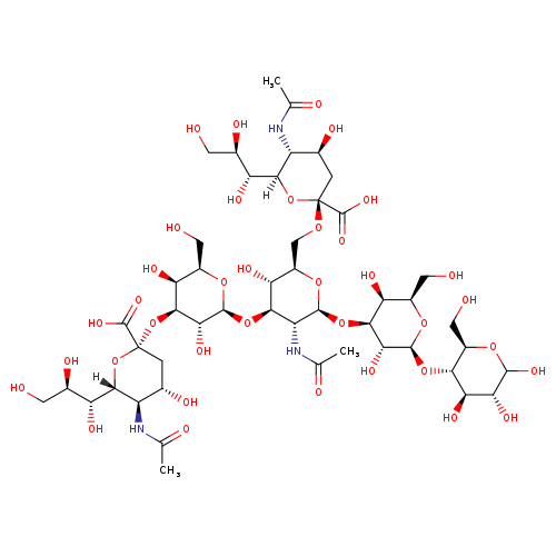 | SMILES | [H][C@]1(O[C@@](C[C@H](O)[C@H]1NC(C)=O)(OC[C@H]1O[C@@H](O[C@H]2[C@@H](O)[C@@H](CO)O[C@@H](O[C@H]3[C@H](O)[C@@H](O)C(O)O[C@@H]3CO)[C@@H]2O)[C@H](NC(C)=O)[C@@H](O[C@@H]2O[C@H](CO)[C@H](O)[C@H](O[C@@]3(C[C@H](O)[C@@H](NC(C)=O)[C@@]([H])(O3)[C@H](O)[C@H](O)CO)C(O)=O)[C@H]2O)[C@@H]1O)C(O)=O)[C@H](O)[C@H](O)CO |
