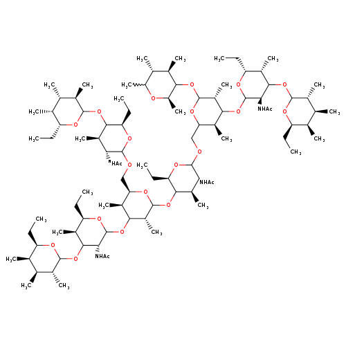 | SMILES | CC[C@H]1OC(OC2[C@H](C)[C@@H](NC(C)=O)C(OC[C@H]3OC(OC4[C@H](C)[C@@H](NC(C)=O)C(OCC5OC(OC6[C@@H](C)OC(C)[C@H](C)[C@H]6C)[C@H](C)C(OC6O[C@H](CC)[C@H](C)C(OC7O[C@H](CC)[C@H](C)[C@H](C)[C@H]7C)[C@H]6NC(C)=O)[C@H]5C)O[C@@H]4CC)[C@H](C)C(OC4O[C@H](CC)[C@H](C)C(OC5O[C@H](CC)[C@H](C)[C@H](C)[C@H]5C)[C@H]4NC(C)=O)[C@H]3C)O[C@@H]2CC)[C@H](C)[C@@H](C)[C@H]1C |
