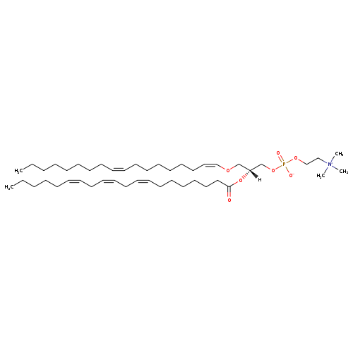 | Description | belongs to the class of organic compounds known as 1-(1z-alkenyl),2-acyl-glycerophosphocholines. These are glycerophosphocholines that carry exactly one acyl chain attached to the glycerol moiety through an ester linkage at the O2-position, and one 1Z-alkenyl chain attached through an ether linkage at the O1-position. |