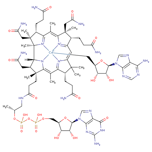 | SMILES | [H][C@@]12[C@H](CC(N)=O)[C@@](C)(CCC(=O)NC[C@@H](C)OP(O)(=O)OP(O)(=O)OC[C@H]3O[C@H]([C@H](O)[C@@H]3O)N3C=NC4=C3N=C(N)NC4=O)C3=C(C)C4=[N+]5C(=CC6=[N+]7C(=C(C)C8=[N+]([C@]1(C)[C@@](C)(CC(N)=O)[C@@H]8CCC(N)=O)[Co--]57(C[C@H]1O[C@H]([C@H](O)[C@@H]1O)N1C=NC5=C1N=CN=C5N)N23)[C@@](C)(CC(N)=O)[C@@H]6CCC(N)=O)C(C)(C)[C@@H]4CCC(N)=O | |||||||||||||||||||||||||||||||||||||||||||||||||||||||||