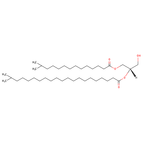| InChI Identifier | InChI=1S/C40H78O5/c1-36(2)30-26-22-18-14-11-9-7-5-6-8-10-12-16-21-25-29-33-40(43)45-38(34-41)35-44-39(42)32-28-24-20-17-13-15-19-23-27-31-37(3)4/h36-38,41H,5-35H2,1-4H3/t38-/m0/s1 | |||||||||||||||||||||||||||||||||||||||||||||||||||||||||