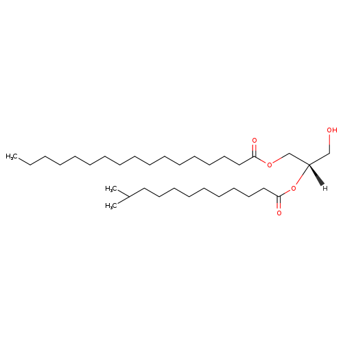 | InChI Identifier | InChI=1S/C33H64O5/c1-4-5-6-7-8-9-10-11-12-13-14-17-20-23-26-32(35)37-29-31(28-34)38-33(36)27-24-21-18-15-16-19-22-25-30(2)3/h30-31,34H,4-29H2,1-3H3/t31-/m0/s1 | ||||||||||||||||||||||||||||||||||||||||||||||||||||||||||||||||||||||||||||