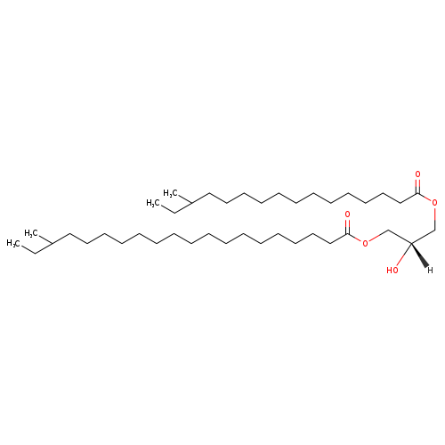 | InChI Identifier | InChI=1S/C41H80O5/c1-5-37(3)31-27-23-19-15-11-9-7-8-10-12-17-21-25-29-33-40(43)45-35-39(42)36-46-41(44)34-30-26-22-18-14-13-16-20-24-28-32-38(4)6-2/h37-39,42H,5-36H2,1-4H3/t37?,38?,39-/m1/s1 | |||||||||||||||||||||||||||||||||||||||||||||||||||||||||