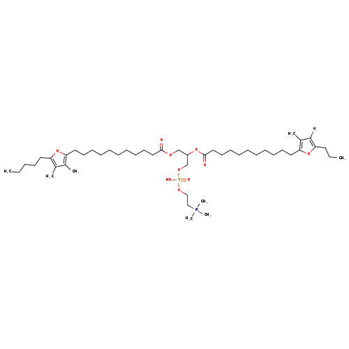 | Traditional Name | 3-{[11-(3,4-dimethyl-5-pentylfuran-2-yl)undecanoyl]oxy}-2-{[11-(3-methyl-5-propylfuran-2-yl)undecanoyl]oxy}propoxy(2-(trimethylammonio)ethoxy)phosphinic acid | ||||||||||||||||||||||||||||||||||||||||||||||||||||||||||||||||