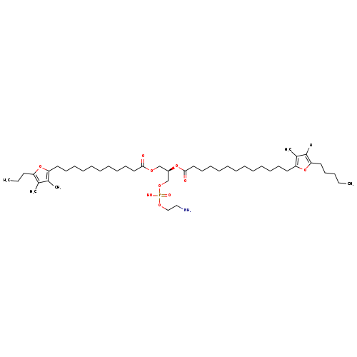 | Traditional Name | 2-aminoethoxy((2R)-3-{[11-(3,4-dimethyl-5-propylfuran-2-yl)undecanoyl]oxy}-2-{[13-(3-methyl-5-pentylfuran-2-yl)tridecanoyl]oxy}propoxy)phosphinic acid |