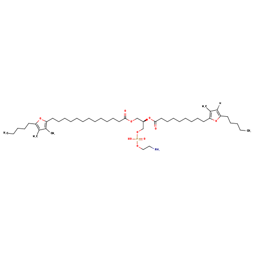 | Traditional Name | 2-aminoethoxy((2R)-3-{[13-(3,4-dimethyl-5-pentylfuran-2-yl)tridecanoyl]oxy}-2-{[9-(3-methyl-5-pentylfuran-2-yl)nonanoyl]oxy}propoxy)phosphinic acid |