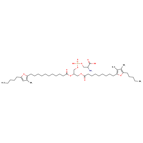 | Traditional Name | 2-amino-3-[(3-{[9-(3,4-dimethyl-5-pentylfuran-2-yl)nonanoyl]oxy}-2-{[11-(3-methyl-5-pentylfuran-2-yl)undecanoyl]oxy}propoxy(hydroxy)phosphoryl)oxy]propanoic acid |