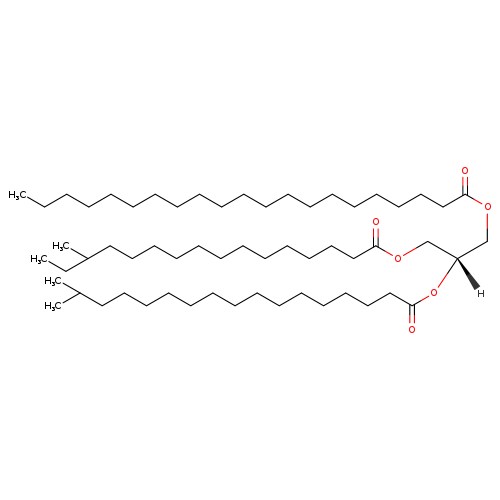 | InChI Identifier | InChI=1S/C59H114O6/c1-6-8-9-10-11-12-13-14-15-16-17-18-19-23-29-34-39-44-49-57(60)63-52-56(53-64-58(61)50-45-40-35-30-26-25-28-33-38-43-48-55(5)7-2)65-59(62)51-46-41-36-31-24-21-20-22-27-32-37-42-47-54(3)4/h54-56H,6-53H2,1-5H3/t55?,56-/m0/s1 |