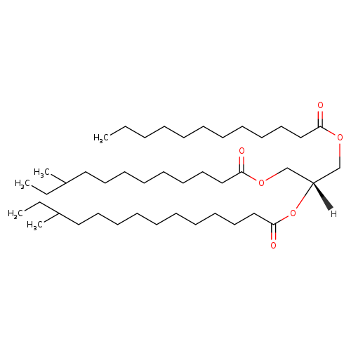 | InChI Identifier | InChI=1S/C43H82O6/c1-6-9-10-11-12-13-17-23-28-33-41(44)47-36-40(37-48-42(45)34-29-24-20-19-22-27-32-39(5)8-3)49-43(46)35-30-25-18-15-14-16-21-26-31-38(4)7-2/h38-40H,6-37H2,1-5H3/t38?,39?,40-/m0/s1 | ||||||||||||||||||||||||||||||||||||||||||||||||||||||||||||||||||||||||||||||||