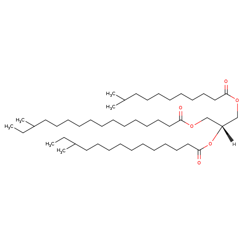 | InChI Identifier | InChI=1S/C47H90O6/c1-7-42(5)34-28-22-15-11-9-10-12-17-24-30-36-45(48)51-39-44(40-52-46(49)37-31-25-20-19-21-27-33-41(3)4)53-47(50)38-32-26-18-14-13-16-23-29-35-43(6)8-2/h41-44H,7-40H2,1-6H3/t42?,43?,44-/m1/s1 | ||||||||||||||||||||||||||||||||||||||||||||||||||||||||||||||||||||||||||||||||