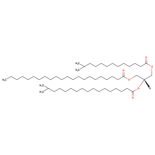 | InChI Identifier | InChI=1S/C57H110O6/c1-6-7-8-9-10-11-12-13-14-15-16-17-18-19-23-26-32-37-42-47-55(58)61-50-54(51-62-56(59)48-43-38-33-29-28-31-36-41-46-53(4)5)63-57(60)49-44-39-34-27-24-21-20-22-25-30-35-40-45-52(2)3/h52-54H,6-51H2,1-5H3/t54-/m1/s1 | ||||||||||||||||||||||||||||||||||||||||||||||||||||||||||||||||||||||||||||