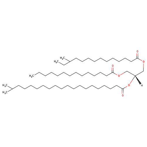 | InChI Identifier | InChI=1S/C53H102O6/c1-6-8-9-10-11-12-18-22-28-33-38-43-51(54)57-46-50(47-58-52(55)44-39-34-29-25-24-27-32-37-42-49(5)7-2)59-53(56)45-40-35-30-23-20-17-15-13-14-16-19-21-26-31-36-41-48(3)4/h48-50H,6-47H2,1-5H3/t49?,50-/m1/s1 |