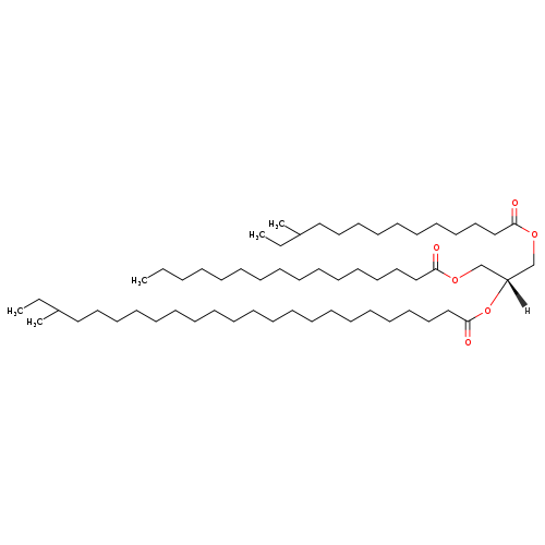 | InChI Identifier | InChI=1S/C59H114O6/c1-6-9-10-11-12-13-14-21-25-28-34-39-44-49-57(60)63-52-56(53-64-58(61)50-45-40-35-31-30-33-38-43-48-55(5)8-3)65-59(62)51-46-41-36-29-26-23-20-18-16-15-17-19-22-24-27-32-37-42-47-54(4)7-2/h54-56H,6-53H2,1-5H3/t54?,55?,56-/m1/s1 |