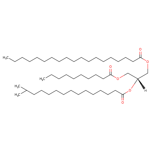 | IUPAC Name | (2R)-3-(decanoyloxy)-2-[(14-methylpentadecanoyl)oxy]propyl nonadecanoate | ||||||||||||||||||||||||||||||||||||||||||||||||||||||||||||||||||||||||||||
