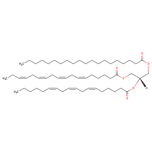 | 1-Arachidonyl-2-g-linolenoyl-3-stearidonoyl-glycerol | HMDB | | 1-Eicosanoyl-2-(6Z,9Z,12Z-octadecatrienoyl)-3-(6Z,9Z,12Z,15Z-octadecatetraenoyl)-glycerol | HMDB | | TAG(20:0/18:3/18:4) | HMDB | | TAG(56:7) | HMDB | | TG(20:0/18:3/18:4) | HMDB | | TG(56:7) | HMDB | | Tracylglycerol(20:0/18:3/18:4) | HMDB | | Tracylglycerol(56:7) | HMDB | | Triacylglycerol | HMDB | | Triglyceride | HMDB | | TG(20:0/18:3(6Z,9Z,12Z)/18:4(6Z,9Z,12Z,15Z)) | Lipid Annotator |
